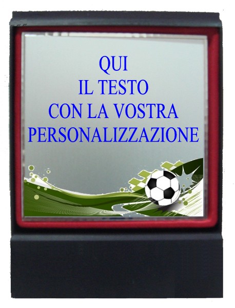 Targhetta cm. 7,8x7,8 in alluminio color argento. Fornita con astuccio in ABS cm. 9x12L'astuccio aperto funge da supporto. Personalizzazione dell'oggetto inclusa.