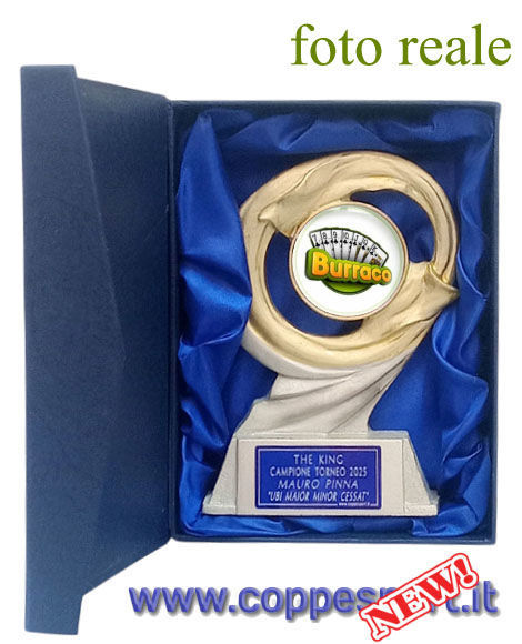 Trofeo in resina. Altezza cm. 17 Inserto Ø mm. 50 con adesivo in rilievo di alta qualità.Box incluso Art. 8130/180 Dimensioni: 16x21x6,5