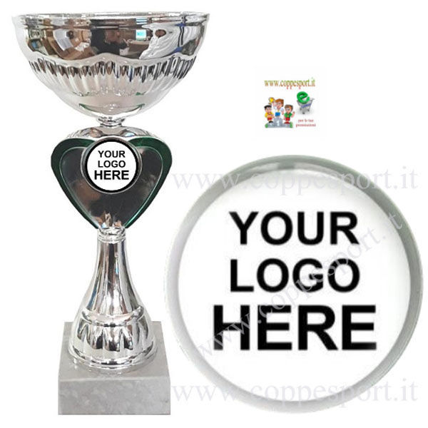 Coppa con tazza in metallo argentato e base in marmo. Componenti intermedi in ABS.