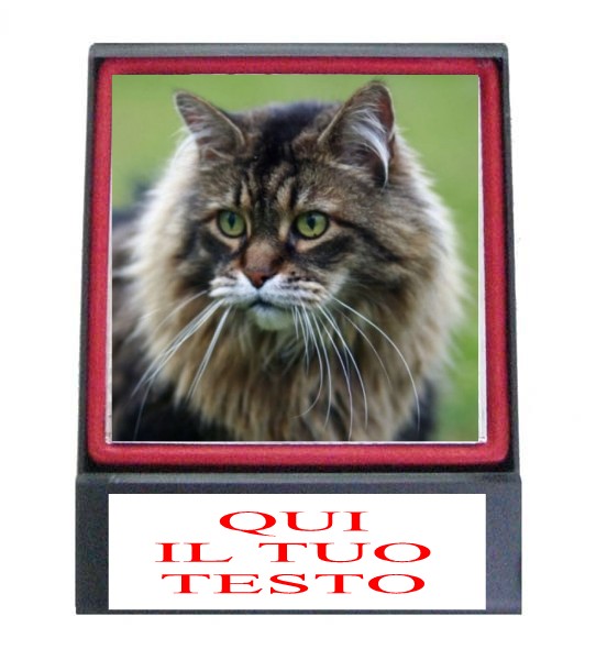 Targhetta cm. 7,8 x 7,8 in alluminio color argento. Fornita con astuccio in plastica cm. 9 x 12. L''astuccio aperto funge da supporto. Personalizzazione dell''oggetto inclusa nel prezzo.
