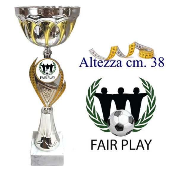 Coppa Trofeo con tazza in metallo. Componenti intermedi in ABS e base in marmo. Altezza cm. 38 - Diametro cm. 14 Inserto con adesivo in rilievo di alta qualità.