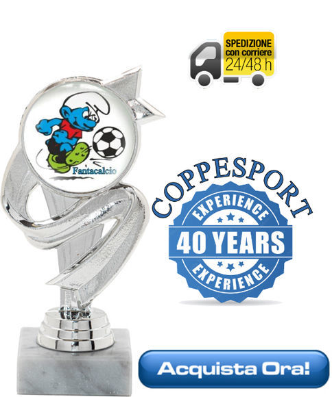 Premio in ABS con base in marmo. Altezza cm. 15Inserto Ø mm. 50 con adesivo in rilievo di alta qualità con logo.Personalizziamo (GRATIS) l'oggetto sul fronte della base con il tuo testo.
