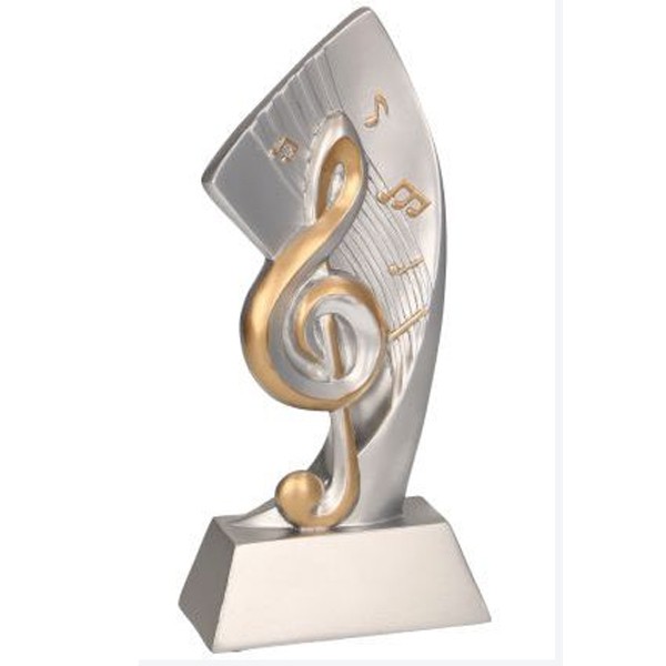 Trofeo in resina color argento e oro per manifestazioni canore o musicali. Altezza cm. 17,5