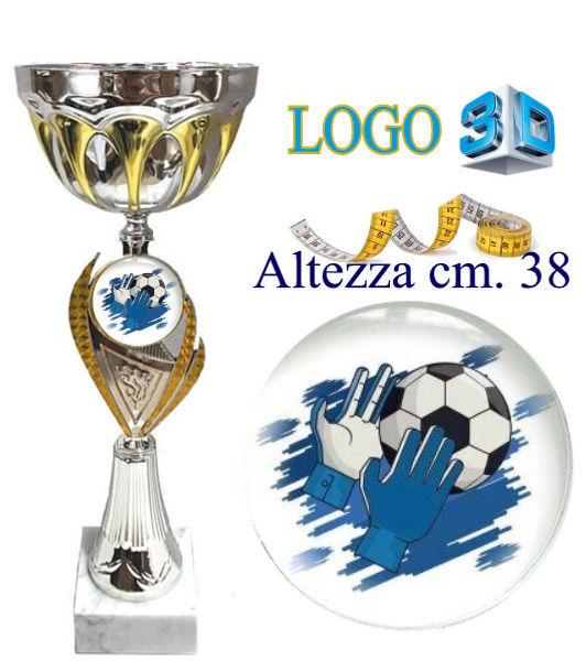 Premio con tazza in metallo. Componenti intermedi in ABS e base in marmo. Altezza cm. 38 - Diametro cm. 14 Inserto diametro cm. 5 con adesivo in rilievo di alta qualità con logo Portiere.