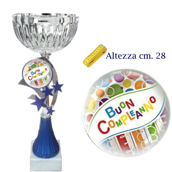 Coppa Trofeo con tazza in metallo per premiare un compleanno.
