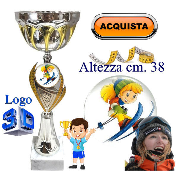Coppa Trofeo con tazza in metallo. Componenti intermedi in ABS e base in marmo.