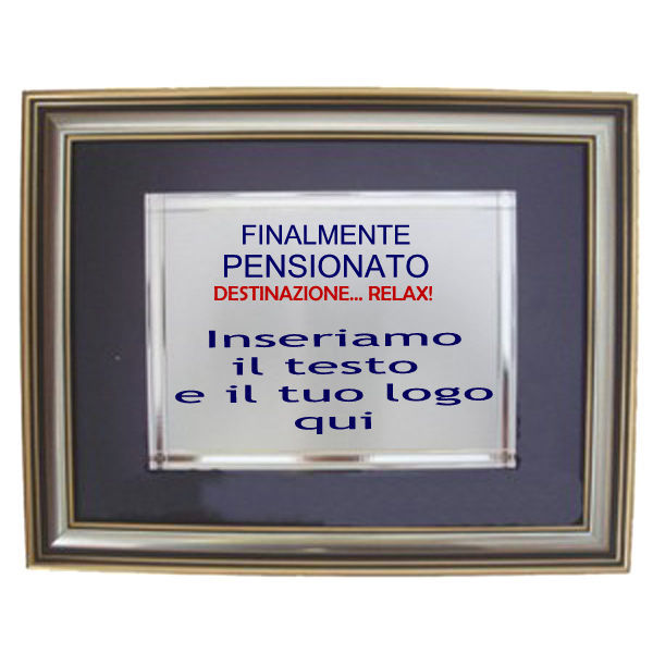 Cornice oro/argento cm. 33 x 26 con targa in alluminio cm. 20 x 15