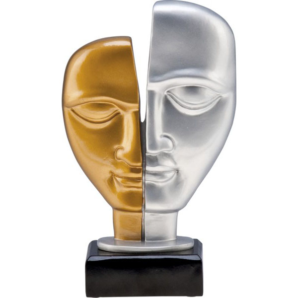 Trofeo in resina color oro e argento. Altezza cm. 22,5 Ideale nella premiazione in una manifestazione teatrale.