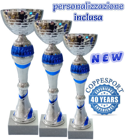 Personalizzazione delle 3 coppe sul fronte della base con testo e logo inclusa nel prezzo.