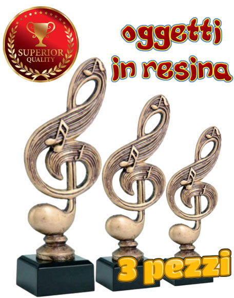 Serie di 3 trofei in resina realizzati in infusione con base in marmo.
