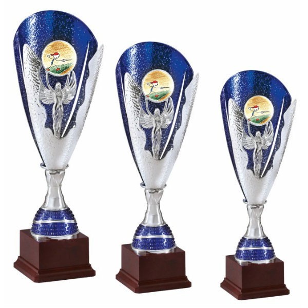 3 Coppe Trofeo in metallo compongono una serie importante per premiare in una manifestazione o torneo di scherma. Componenti centrali e base in ABS. Inserto con adesivo in rilievo di alta qualità con logo Scherma per valorizzare ancora di piu'' la tua premiazione. Serie da 3 pezzi: 1° Classificato - Altezza cm. 48 2° Classificato - Altezza cm. 43 3° Classificato - Altezza cm. 38 Personalizzazione sul fronte della base mediante l''applicazione di una etichetta in poliestere adesivo, inclusa nel prezzo, con testo e logo.
