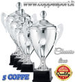 Eleganti Coppe con tazza in metallo argentato con manici e coperchio.