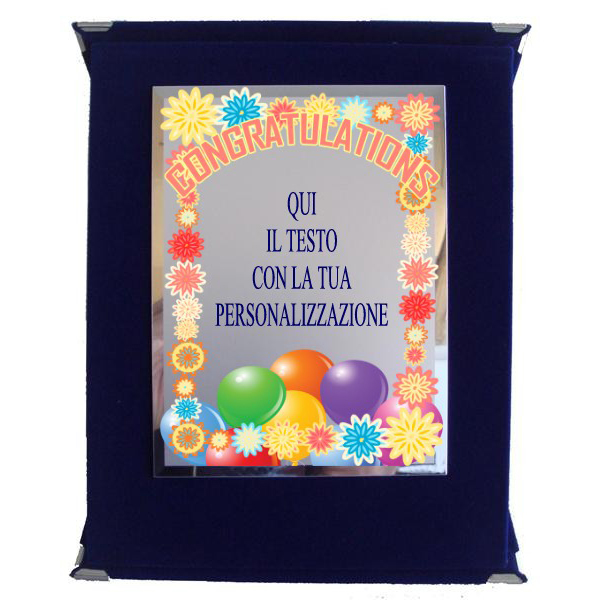 Targa in alluminio cm. 10 x 15 con elegante folder vellutato. L''oggetto viene personalizzato con stampa in quadricromia a trasferimento termico.