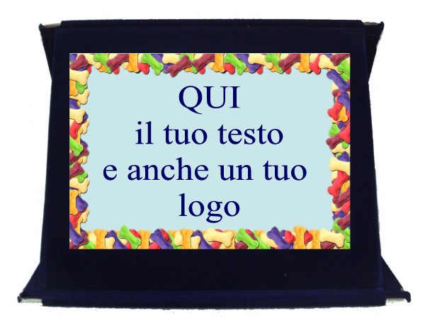 Targa in alluminio cm. 20 x 15 con elegante folder vellutato. L'oggetto viene personalizzato con testo ed eventual logo.