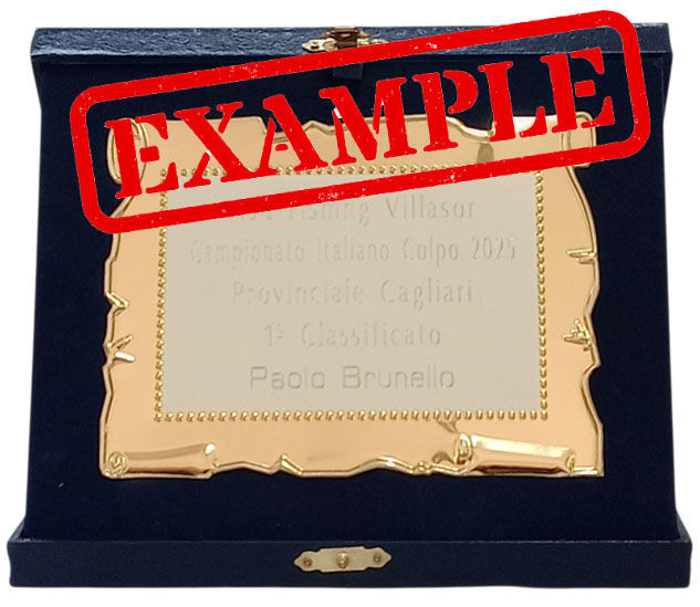 Targa in alluminio con cornice dorata. Dimensioni targa cm. 16 x 12 fornita con astuccio dimensioni cm. 21 x 17. Personalizzazione dell'oggetto con elegante incisione del testo inclusa nel prezzo.