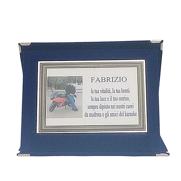 Targa in alluminio cm. 14 x 10 con elegante folder portatarga vellutato.Personalizziamo l'oggetto con testo e logo o con un tuo progetto.