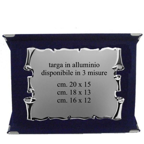 Targa pergamena in alluminio. La targa è fornita con un elegante folder vellutato.