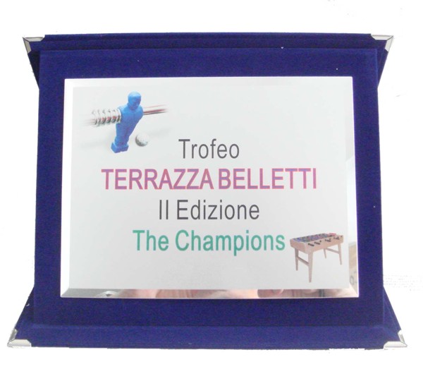 TARGA PREMIAZIONE CALCIOBALILLA cm. 20 x 15