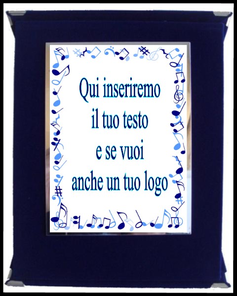 Targa in alluminio cm. 10 x 15 con folder vellutato. L'oggetto viene personalizzato con stampa digitale. E' possibile, oltre al testo, allegare un file con un vostro logo o immagine.