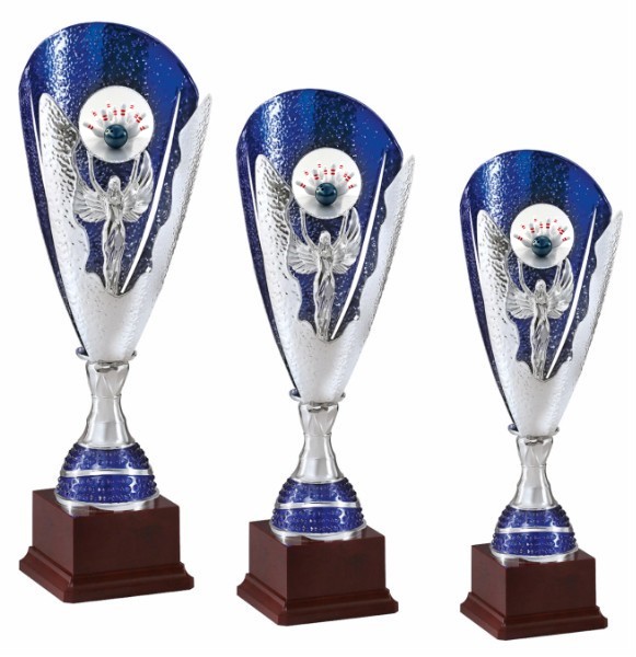 Coppa Trofeo in metallo. Componenti centrali e base in ABS. Inserto centrale Ø mm. 50 effetto 3D. Serie da 3 pezzi: 1° Classificato - Altezza cm. 48 2° Classificato - Altezza cm. 43 3° Classificato - Altezza cm. 38 Personalizzazione sul fronte della base mediante l''applicazione di una targhetta con testo e logo (inclusa nel prezzo).