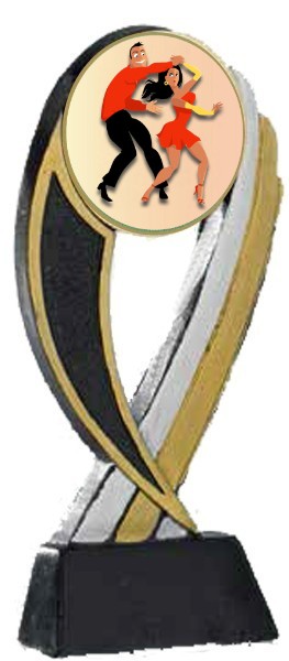 Trofeo in resina altezza cm.15 Inserto diametro mm. 50 con adesivo in rilievo di alta qualità con logo Danza. Personalizzazione dell''oggetto con etichetta in poliestere adesivo inclusa nel prezzo.
