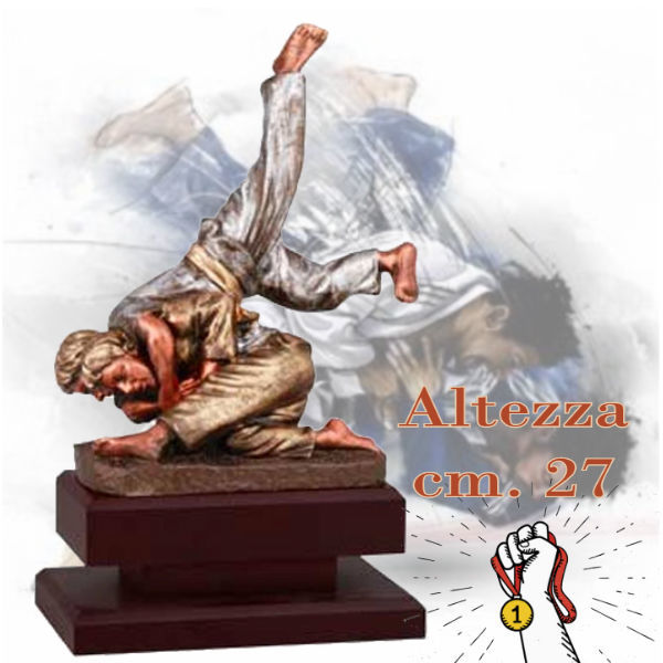 Trofeo in resina con base in legno. Altezza cm. 27 Personalizzazione sul fronte della base inclusa nel prezzo.