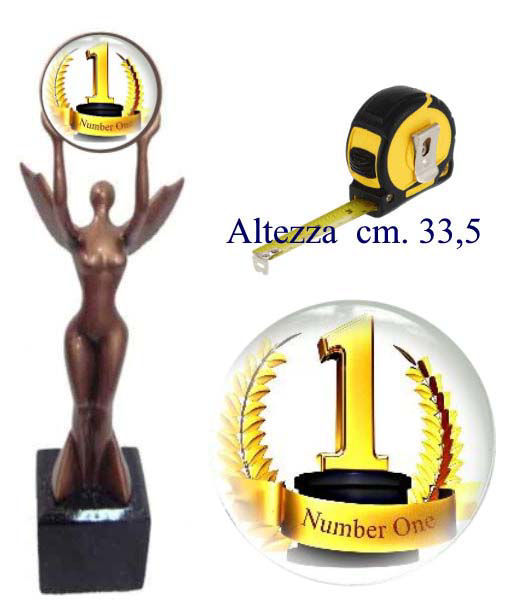 Trofeo in resina con base in marmo. Altezza cm. 33,5 Inserto Ø mm. 50 con adesivo in rilievo di alta qualità.