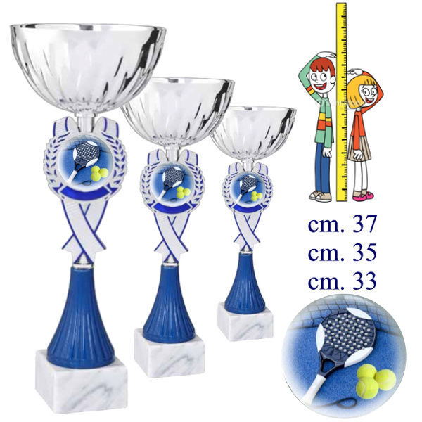 Serie di 3 Coppe con tazza in metallo e base in marmo.