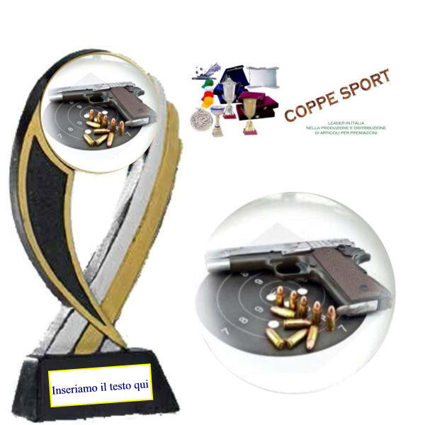 Premio in resina altezza cm. 15 Inserto Ø mm. 50 con adesvo in rilievo di alta qualità.