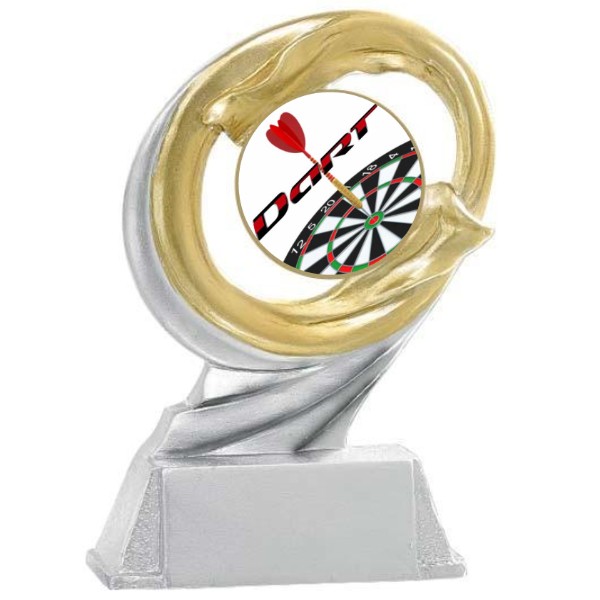 Trofeo in resina. Altezza cm. 17 Inserto Ø mm. 50 con adesivo in rilievo di alta qualità.