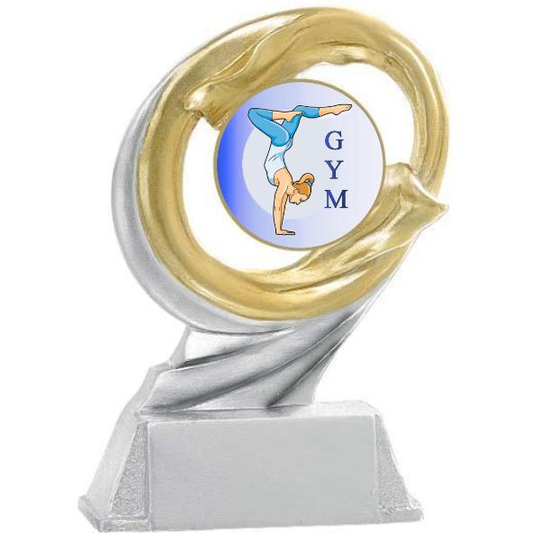 Trofeo in resina. Altezza cm. 17 Inserto Ø mm. 50 con adesivo in rilievo di alta qualità.