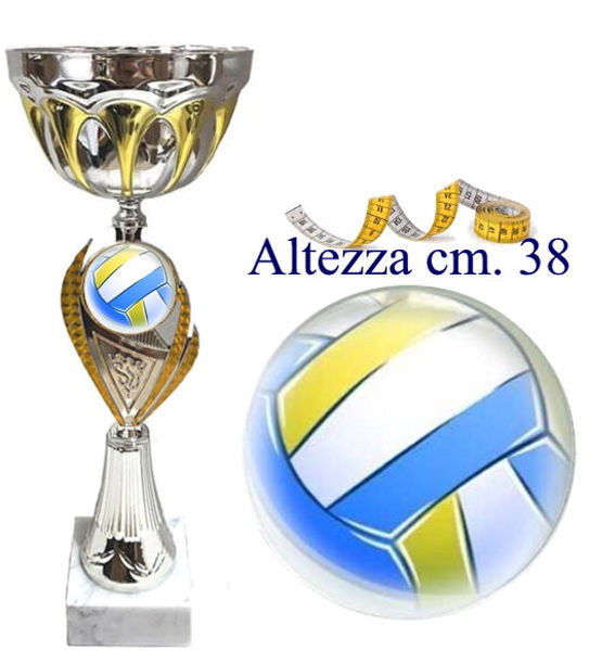 Coppa Trofeo con tazza in metallo. Componenti intermedi in ABS e base in marmo. Altezza cm. 38 - Diametro cm. 14 Inserto Ø mm. 50 con adesivo in rilievo di alta qualità.