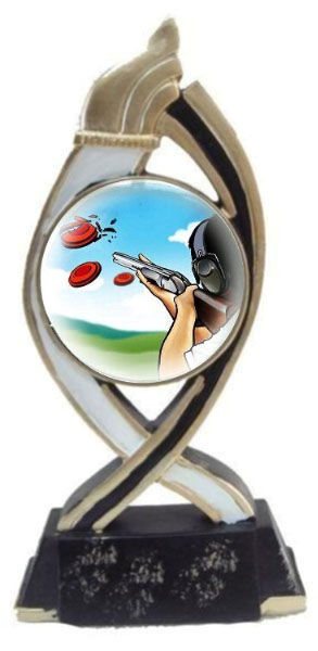 Premio in resina. Altezza cm. 18Inserto Ø mm. 50 con adesivo in rilievo di alta qualità con logo.