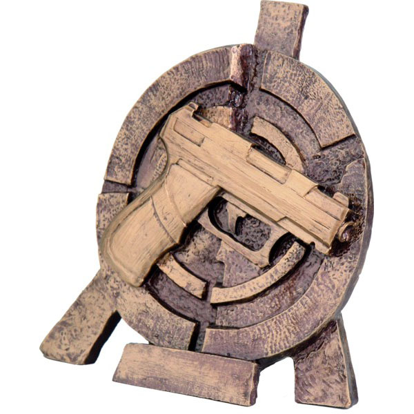Trofeo in resina color bronzo. Altezza dell'oggetto cm. 15 Personalizzazione sul fronte della base mediante l'applicazione di una targhetta o etichetta inclusa nel prezzo.