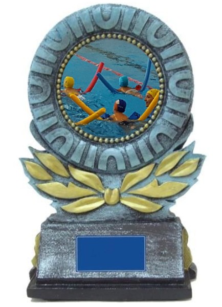 Trofeo in resina. Inserto centrale resinato Ø mm. 50 effetto 3D. Altezza cm. 16 Personalizzazione dell''oggetto con targhetta incisa (inclusa nel prezzo).
