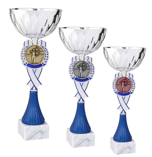 Coppa Trofeo con tazza in metallo. Base in marmo.