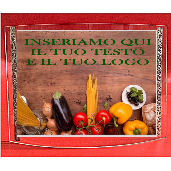 Portatarga in cristallo con targa in alluminio cm. 20 x 15 per premiazioni in manifestazioni di gastronomia. Personalizzazione dell'oggetto con testo e logo inclusa nel prezzo.